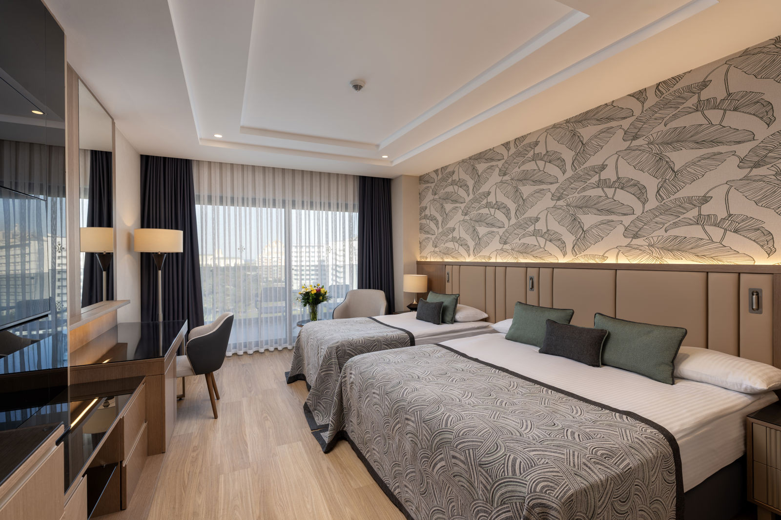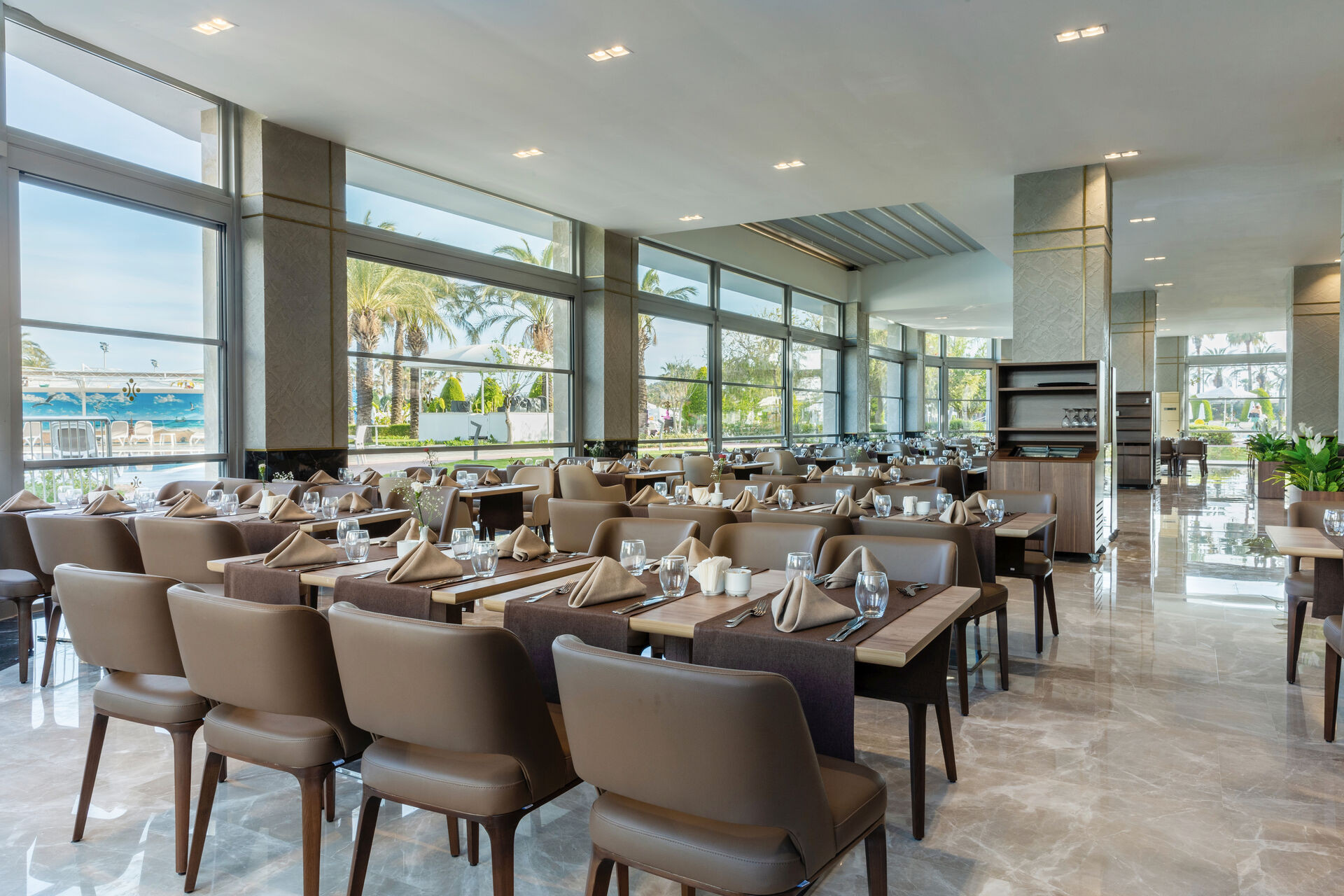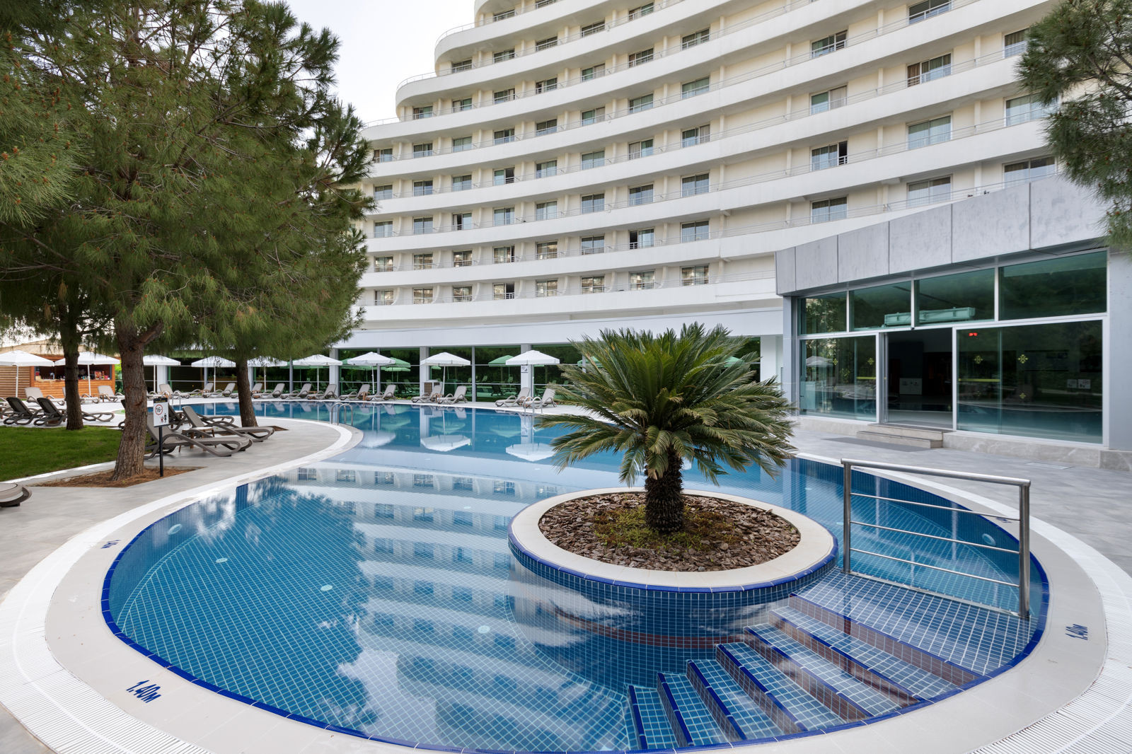 Dit beachhotel bevindt zich in de toeristische regio Antalya-Lara en ligt direct aan het bekende strand van Lara. Het stadscentrum van Antalya bereikt u na ca. 10 km. Binnen een straal van ca. 5 km vindt u talrijke mogelijkheden om te winkelen, bars, restaurants en een bruisend nachtleven. De transfer van en naar de luchthaven duurt ongeveer 30 min.